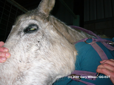 King was a little out of condition owing to not being able to chew correctly and Peter suspected some very bad rear teeth. He had arranged to have king sedated at a vet clinic so we could perform a proper examination and corrective treatment.